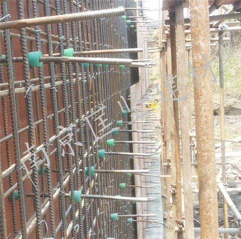 新型止水螺桿結(jié)構(gòu)為三段式所以在支模時(shí)提前將內(nèi)外桿進(jìn)行連接,形成一段式的結(jié)構(gòu)便施工后的拆卸操作,而且在地下室砼墻的時(shí)候,通過(guò)新型止水螺桿的支撐搭建模板,從而進(jìn)行混凝土的澆筑,新型止水螺桿具體安裝步驟為由內(nèi)而外,依次是板墻、模板、木方、鋼管、山型卡和螺帽。螺桿由中間向兩邊依次為止水片、接頭母、螺帽。止水螺桿貫穿板墻墻體、模板、木方、鋼管和山型卡,后來(lái)用螺帽固定緊。在混凝土澆注完成、拆除模板后再拆卸掉外桿,其中內(nèi)桿是留在墻體內(nèi)的,而外桿和喇叭頭是可以重復(fù)循環(huán)使用的
