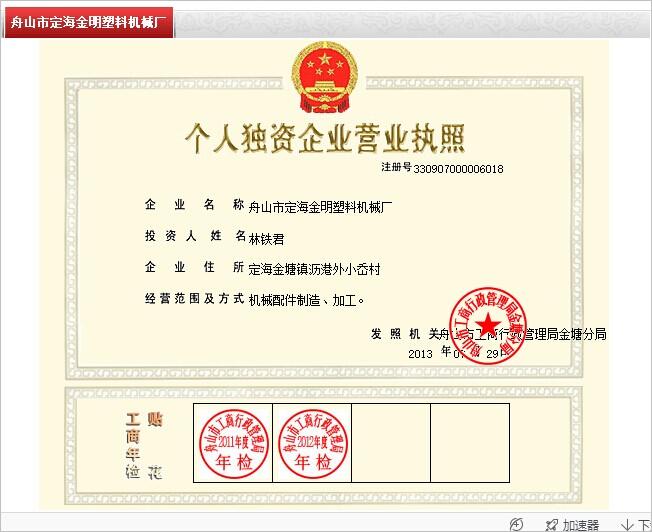 舟山市定海金明塑料機械廠