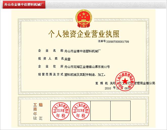 - 舟山市金塘中浩塑料機(jī)械廠